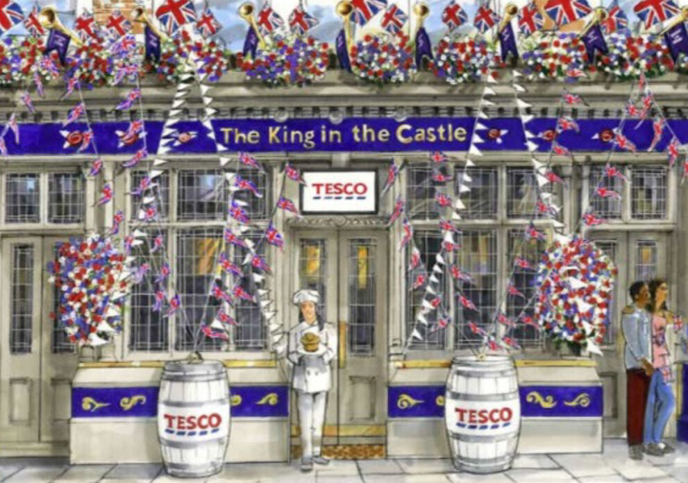 Tesco is taking over The King in the Castle pub in Farringdon, London, showcasing OL foods – a limited edition Coronation range. Offering dishes such as ‘Camilla’s King Prawn Curry’ and ‘The Prince’s Crust Pie’.