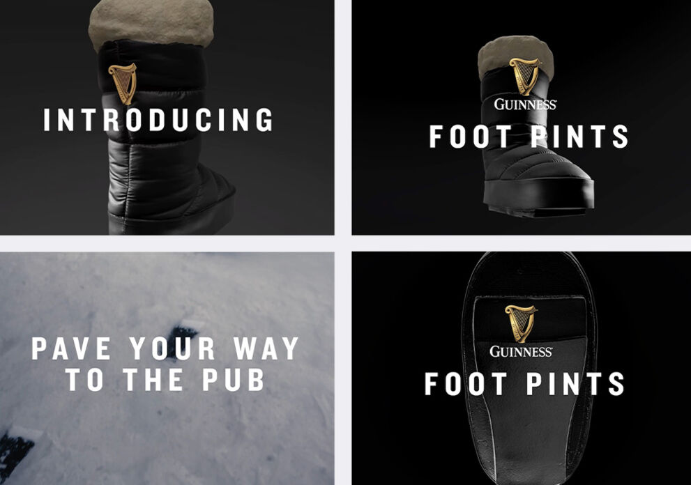 In it's latest 'pint play' genius, Guinness is running a campaign to celebrate the winter boots that it has created, to leave 'foot pints' in the snow, paving the way to the pub!