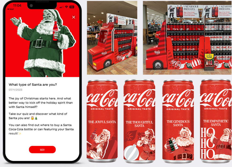 - Alongside this campaign, a social ad is asking consumers ‘What type of Santa are you?’ by encouraging them to take a quiz on the Coca-Cola app, for the opportunity to personalise their Santa-themed products.
