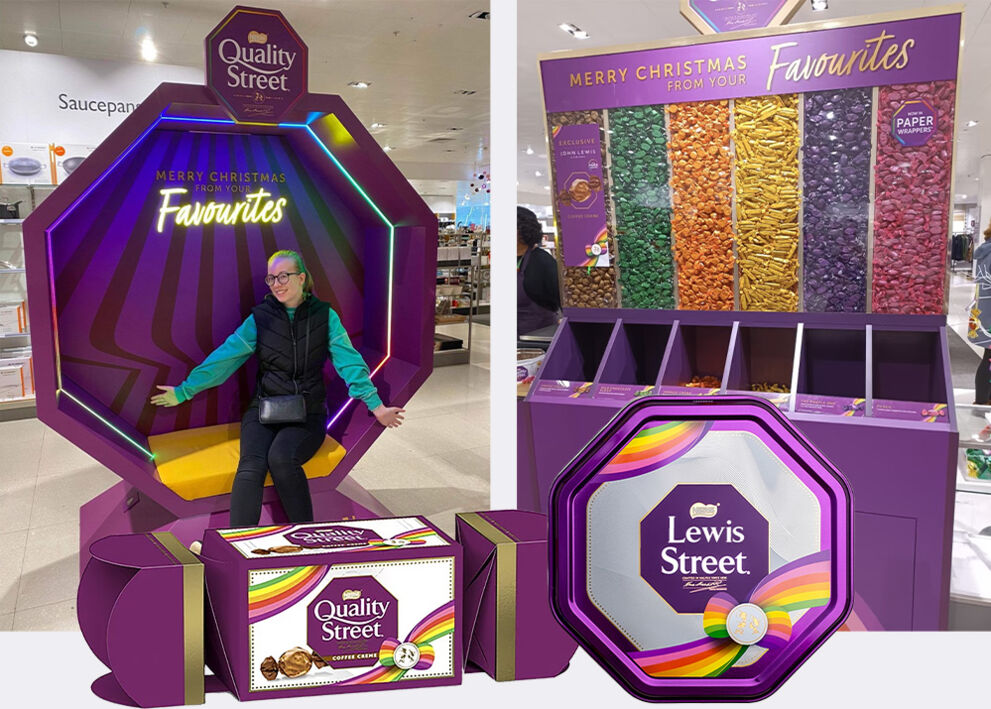 - As well as the iconic tins, shoppers can opt for a new Christmas cracker box design whilst taking a selfie in a giant ‘favourite’ themed backdrop.