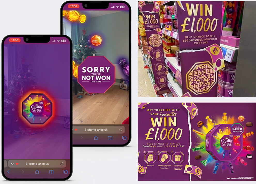 - Players move their phone around the room and when a Quality Street tub appears, they tap on it to find out if they are a winner