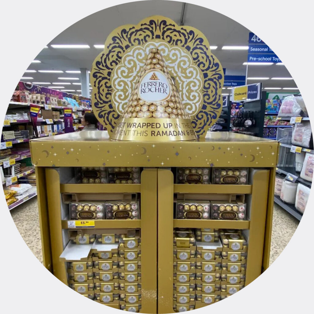 Ferrero Rocher joins the Ramadan lineup with a ‘Get Wrapped Up’ display that screams premium gifting. The gold-heavy, ornate design draws the eye, positioning the brand as the centerpiece for Eid celebrations.