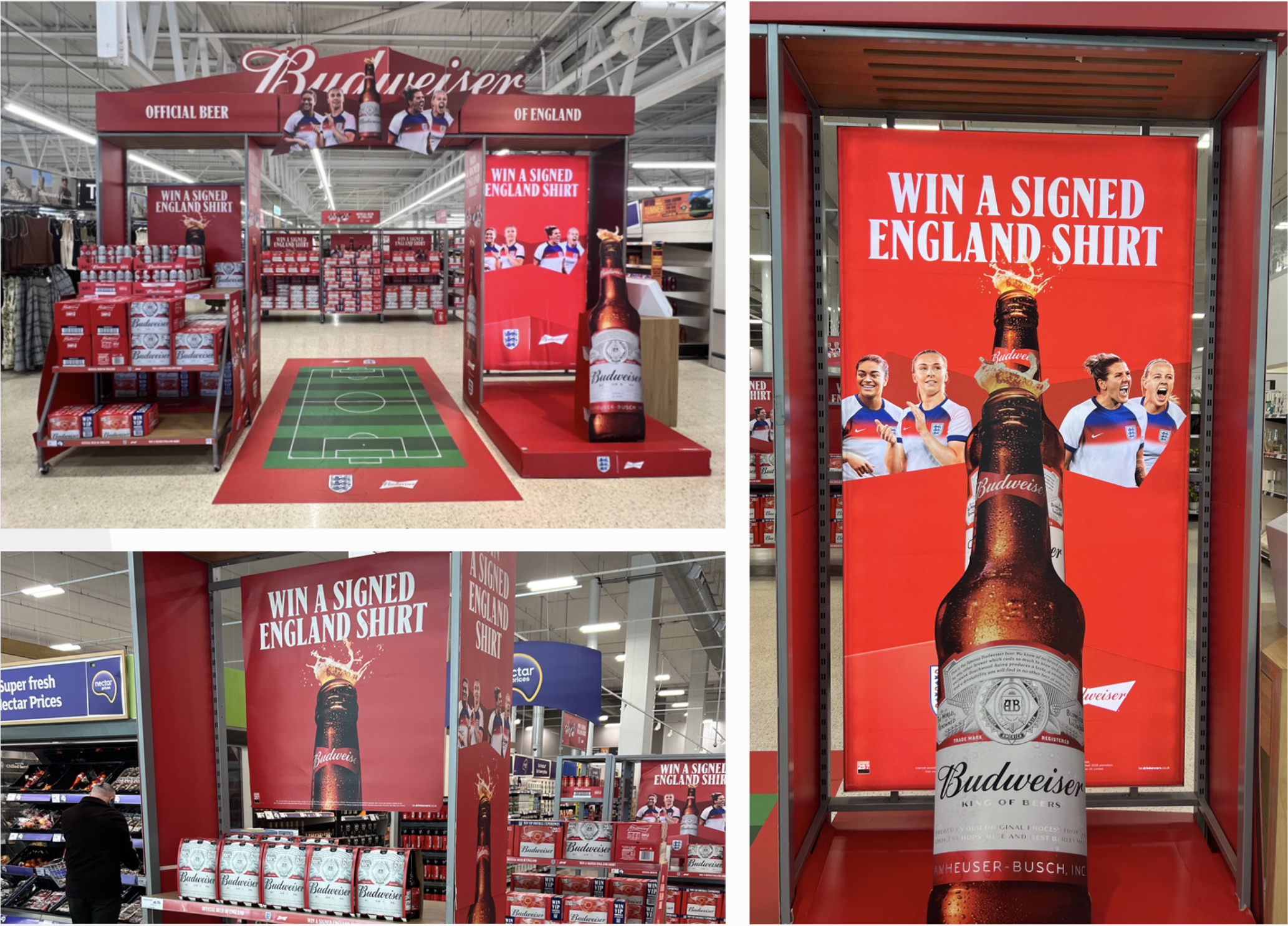 As the official beer of England football, Budweiser celebrated the Women’s Euros with an exclusive promotion for Sainsbury’s shoppers. The campaign gives customers the chance to win a signed England shirt and is brought to life with huge front-of-store takeovers, featuring giant standee bottles to grab shoppers’ attention.
