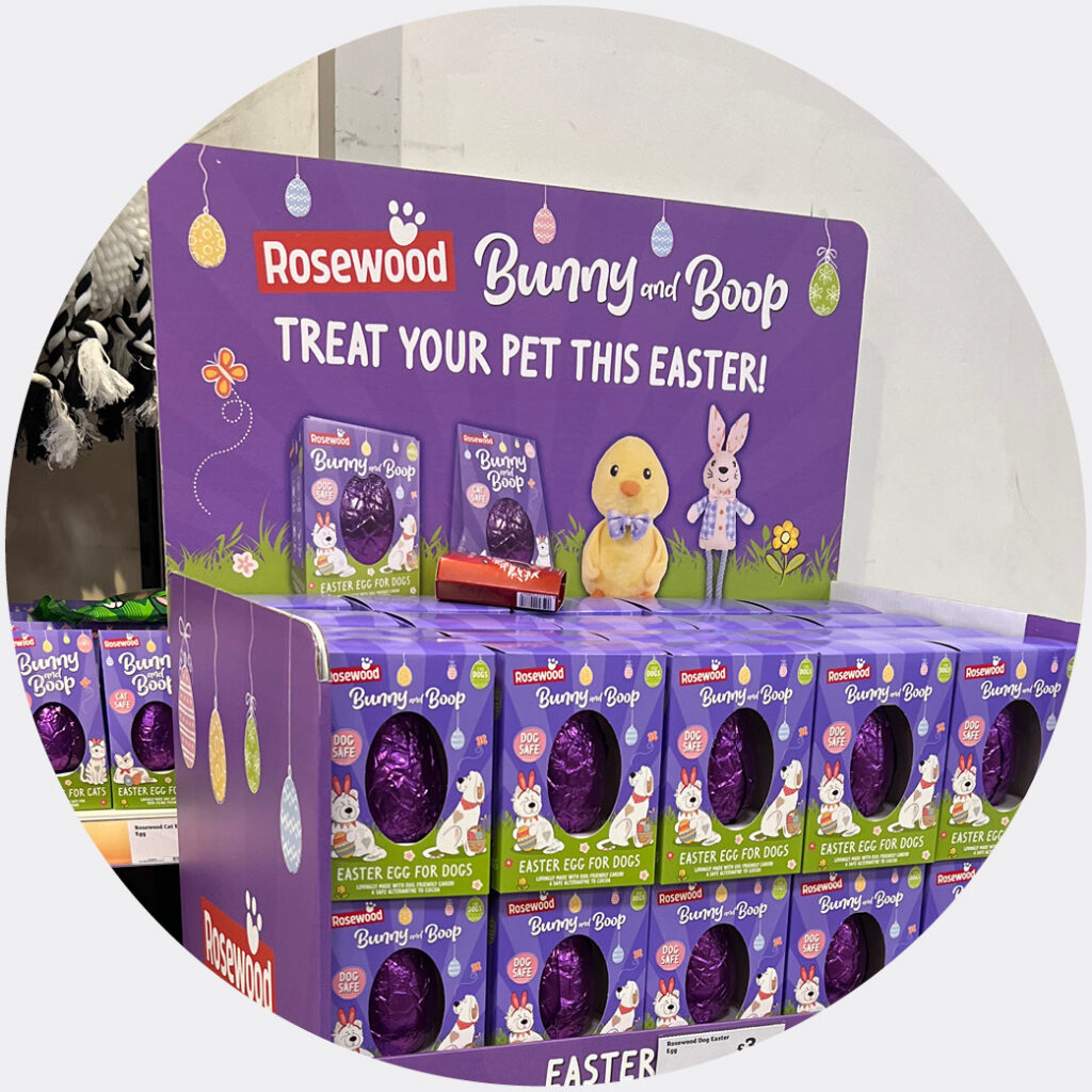 In an unusual Easter twist, Rosewood taps into the humanisation trend, offering Easter eggs and toys for dogs and cats. This themed display drives incremental sales by making pets a central part of the seasonal gifting mission.