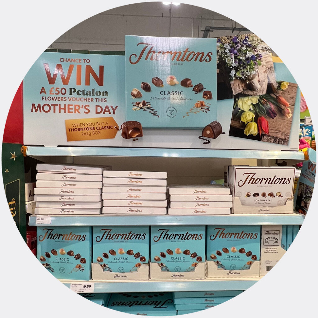 Thorntons is driving Mother’s Day sales with a chance to win a £50 Petalon flowers voucher upon purchase. This smart flowers and chocolate pairing adds perceived value and captures the complete gifting mission.