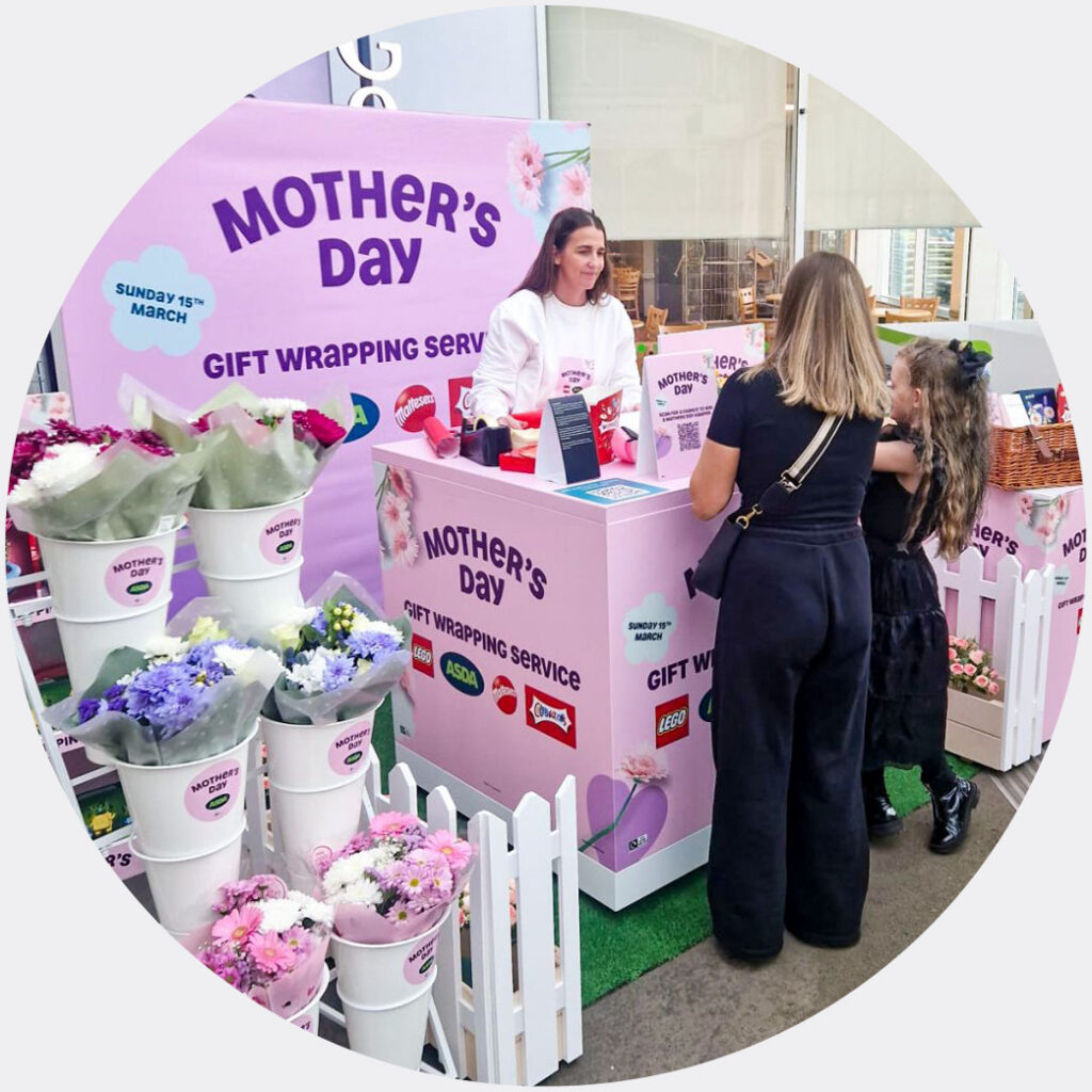 Asda’s Mother’s Day pop-up offers a Gift Wrapping Service to drive shopper convenience. The cross-category activation features LEGO, Maltesers, and Celebrations, adding value through a physical service to boost loyalty.