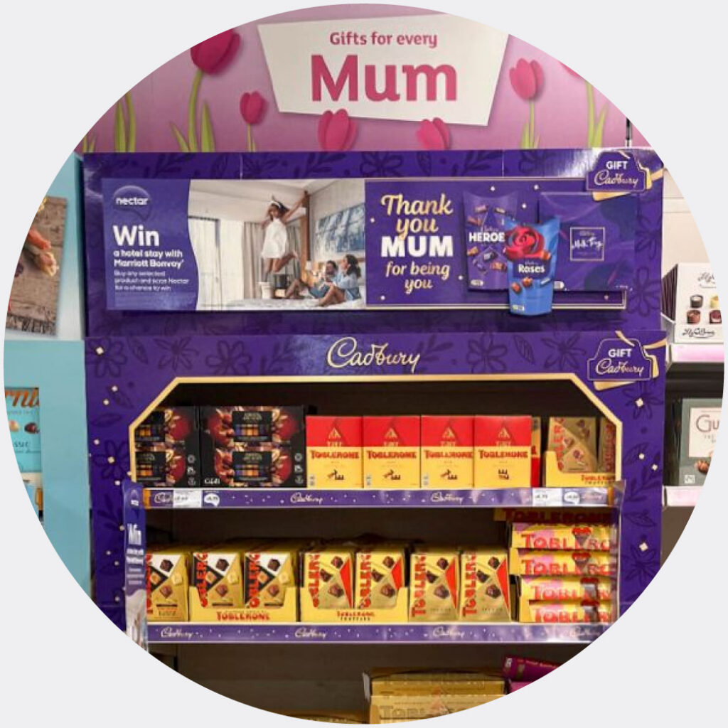 Sainsbury’s & Cadbury have partnered for a Mother’s Day giveaway. Shoppers scanning their Nectar card when buying Cadbury gifts can win a Marriott Bonvoy hotel stay, a clever way to link chocolate to the gifting occasion.