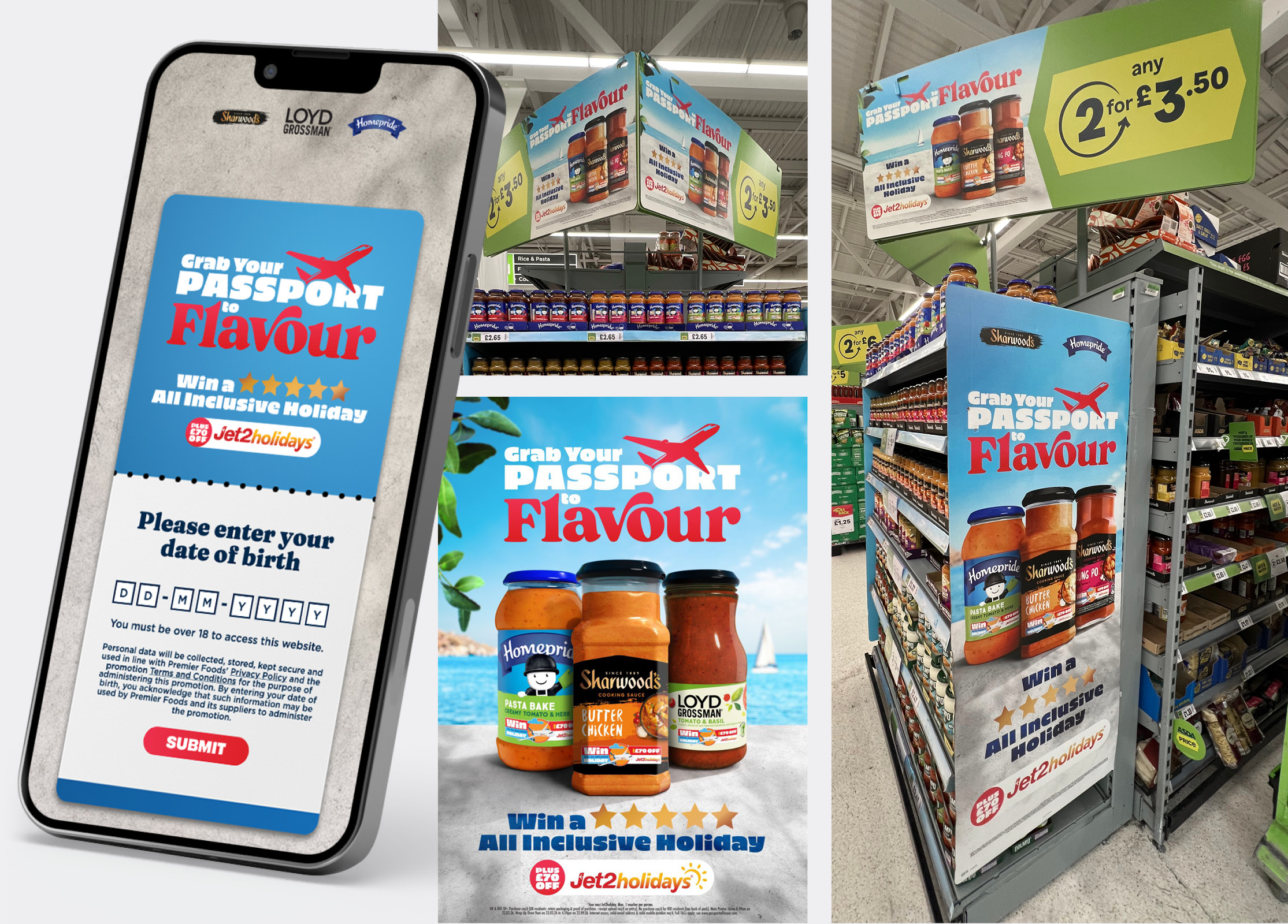 Premier Foods is running a “Passport to Flavour” partnership with Jet2holidays, featuring Sharwood’s, Loyd Grossman, and Homepride. Shoppers can win one of five 5* all-inclusive family holidays or a £500 voucher. Every valid entry also guarantees a £70 discount code, driving immediate value and incentivising cross-category purchases.