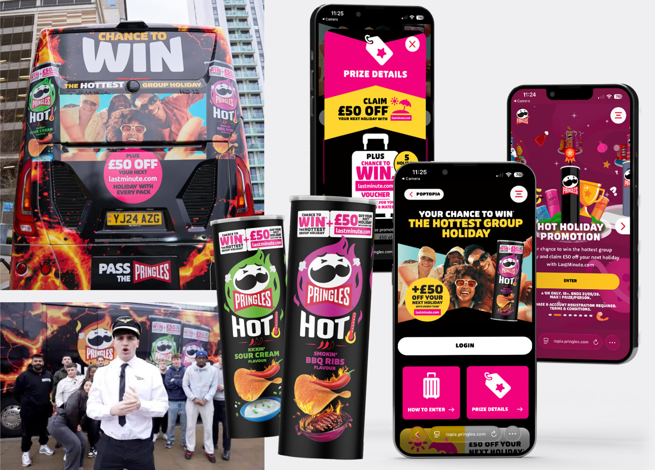 Pringles’ latest activation features a high-impact on-pack promo partnering with lastminute.com. Shoppers can win 1 of 5 £5,000 group holidays, with every promotional can offering a guaranteed £50 off flight + hotel packages. The wider Gen Z-targeted campaign used a creator-led “hot seat” challenge in Manchester to drive massive social engagement.