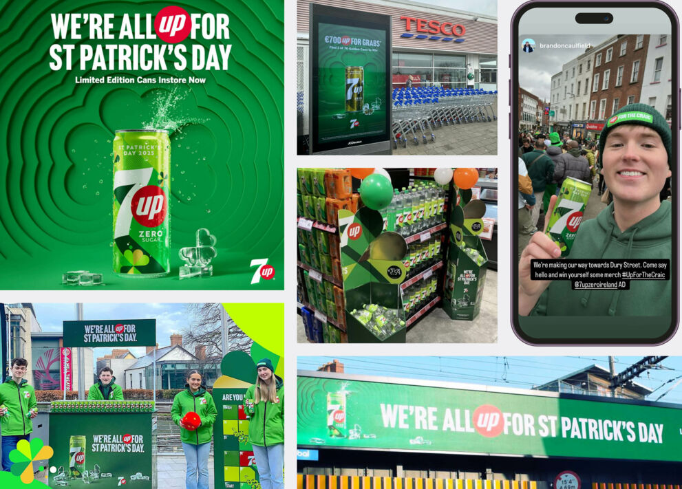 7UP is celebrating St. Patrick’s Day in style with a Golden Can promotion, giving lucky winners €700. The brand has also launched limited-edition St. Patrick’s Day cans and merchandise, with in-store takeovers, activations, and nationwide OOH and radio campaigns, making a splash across Ireland — a bold, exciting celebration of all things green!