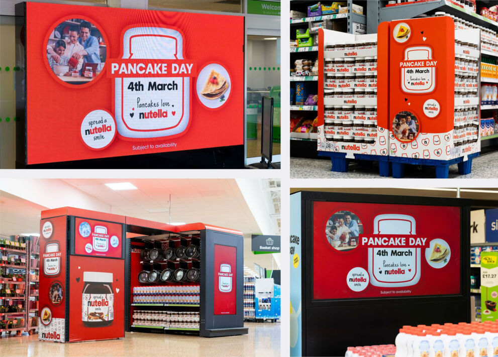 The Nutella ‘Spread a Nutella Smile’ campaign in ASDA stores nationwide made Nutella the must-have Pancake Day topping. Eye-catching in-store displays, digital screens, and strategic POS materials drove visibility and impulse buys of retailer own-brand products. With warm family imagery and engaging messaging, the campaign reinforced Nutella’s role in making Pancake Day extra special.