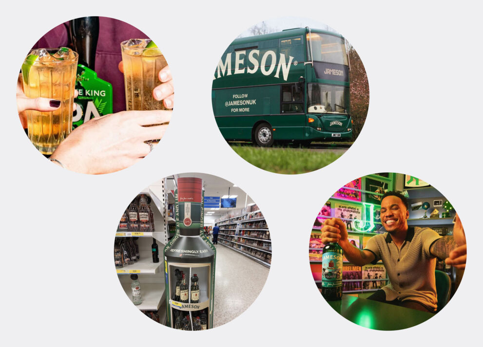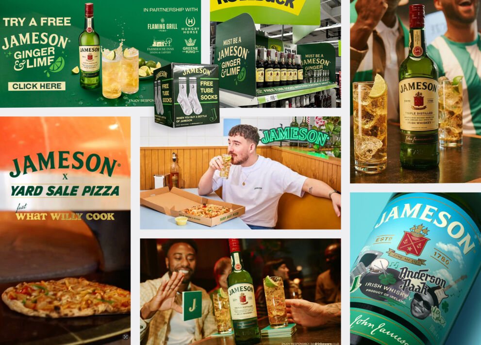 Jameson’s 2025 ‘Must Be a Jameson’ campaign marks St. Patrick’s Day with a multi-million-pound push. Activations include a Sky Sports and VOD partnership, the ‘Orla Board’ bus at Wembley’s Carabao Cup Final, and on-trade giveaways in Young’s and Greene King pubs. A Yard Sale Pizza collaboration and a limited-edition bottle boost engagement nationwide.