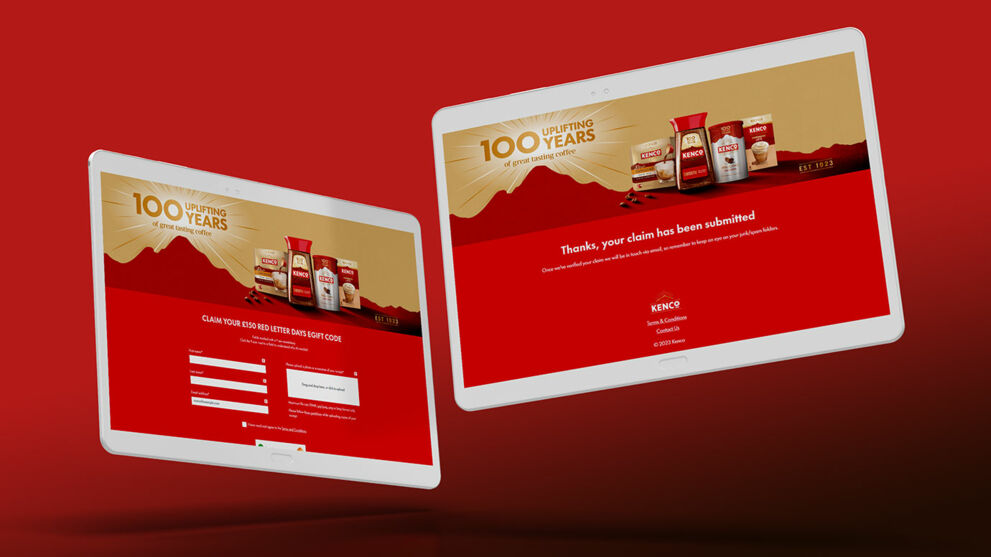 Kenco wanted to celebrate its 100th birthday and create brand excitement by giving some lucky consumers a chance to win either £100, £150, or £250 e-gift cards for Red Letter Days experiences.